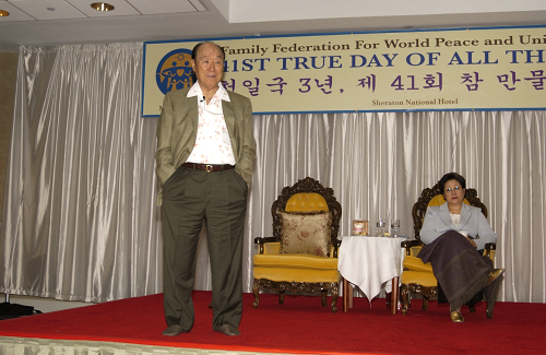 There should be no further division from now. There should be no division of heaven and earth. No division between the spirit world and the physical world. You should now as Blessed Central Families and owners of Cheon Il Guk you must pay very close attention to your senses and let God tell you the direction that you must go. You must bring your mind and body together as one. Then God will guide you. We are restoring the position of Adam and Eve. We must connect with God's thought and heart and connect with God's way and then restore Adam's Family. Since Father and Mother's Coronation and Holy Wedding then you can now establish your own authority of Kingship.