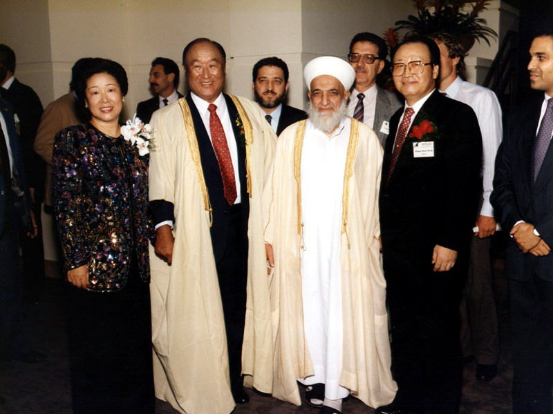 In 1989 His Eminence attended the Council for the World’s Religions (CWR) Conference, Family and Law in Islam, in Istanbul, Turkey. During that conference Sheikh Kuftaro learned of the global and interreligious vision of Father Moon, CWR founder, and set out to learn more.