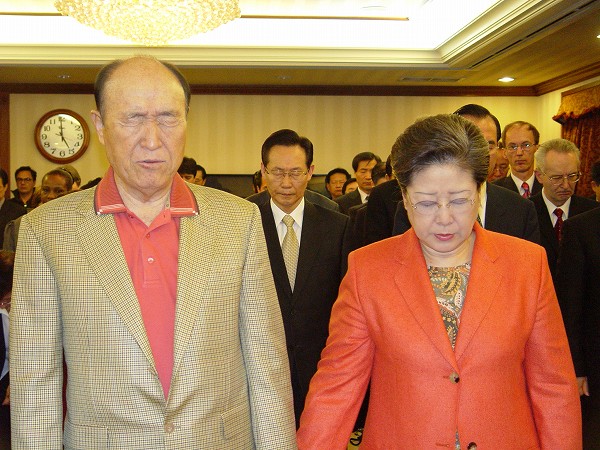 We pray that the bones, skin and flesh of all things in the universe may unite in one stroke and settle down on this day centering on the love of True Parents. We pray that all Creation's sovereignty of love can be led towards the king of kings on the absolute family foundation of your victory. We pray that you will accept with joy our bows that we offer you this morning on this day worthy of praise. We pray that the bitter pain of True Parents can be resolved and liberated along with this morning's prayer, and that this day can be recorded as a day of transition. We pray that China and the USSR centering on North Korea, and the democratic world centering on South Korea, and all the things centering on communism can be united before you and become your eternal foundation of victory -- the absolute, unique, unchanging, and eternal family foundation of victory for the victorious sovereignty of love. All these things we report to you, and we pray you may accept this with joy. This I proclaim in the name of True Parents. Amen. Amen. Amen.