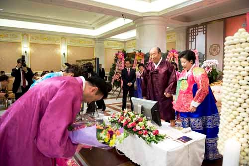 Respected heads of states, ladies and gentlemen! On behalf of my family I would like to express my deep gratitude for your coming all this way in the cold weather to the Cheon Jeong Peace Palace to celebrate my birthday and that of my beloved wife.