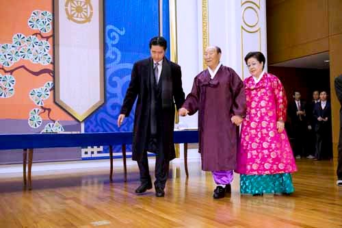 Mrs. Wonju McDevitt reads chapter nine from the Pyeonghwa Hoongyeong.