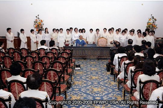 After speaking for about an hour and forty minutes, True Father asked Rev. Yo Han Lee's wife to sing. He then asked a few leaders to sing and then the Japanese sisters who participated in the forty-day Yeosu workshop.