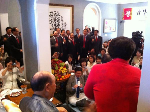 日本のお父さん合唱団チームがすごいんですが~ 真の父母様のために準備された真っ赤な薔薇の花が見えますか