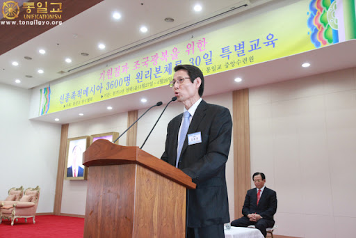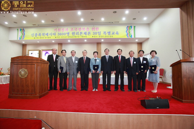 Closing ceremony of the "30-Day Special Education of the Original Substance of the Divine Principle for 3,600 New Tribal Messiahs" ( 신종족적 메시아 3600명 원리 본체론 30일 특별교육) on 4. 26 HC (June 15, 2012) at the Central Training Center