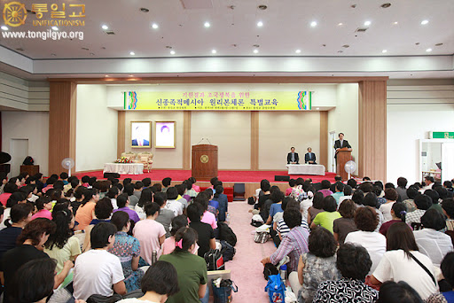 The closing ceremony of the "5-Day Special Education of the Original Substance of the Divine Principle for New Tribal Messiahs" was held at the Central Training Center in Guri city on HC 5. 7 (June 26, 2012). The following is a photo taken at the ceremony.