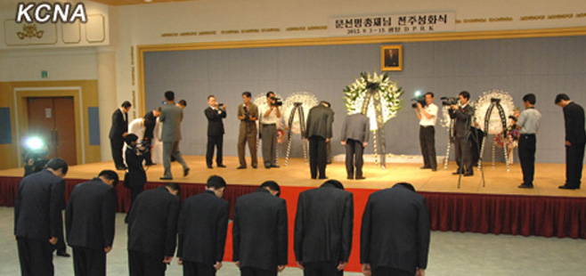 “Present on the occasion was a person concerned of the funeral committee from south side. A ceremony for awarding the National Reunification Prize to Moon Sun Myung was held at the Mansudae Assembly Hall that day.