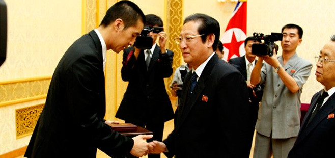 The Presidium of the Supreme People's Assembly of the DPRK has conferred the National Reunification Prize upon late Rev. Sun Myung Moon, according to North Korea’s Central News Service (KCNA). Rev. Hyung Jin Moon, the successor to his father’s position as head of a global church, met Sept. 7, 2012 with high North Korean Officials and Rev. Moon’s elderly relatives at the church’s complex in Pyonyang.
