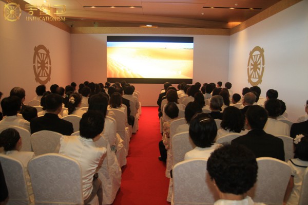 清心平和ワールドセンターの中に入ると、参拝客らは100人ずつ待ってから映像の上映館に入って10分間真のお父様追悼映像を観覧する。映像上映を終えた参拝客はエスカレーターに乗って地下1階に移動する。
