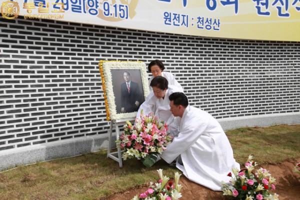 天基3年天歴7月29日(陽9.15)午後1時30分 、天聖山では文鮮明天地人真の父母天宙聖和原殿式が挙行された。