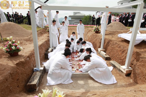 <真のお父様の梓宮を封する様子>