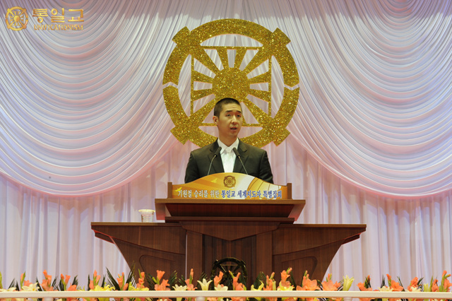Rev. Yeong Seop Song prayed as follows: "From today, we will directly attend True Father who is in Heaven and follow True Mother's will on Earth and start to work towards realizing your hope; the unification between North and South Korea and an ideal world of peace in earnest. We will inherit the life True Father has shown us; shedding sweat, tears and blood for the Will. As we repent today for not fulfilling our filial duties in the past as your representatives, we pledge to attend True Mother loyally and wholeheartedly."