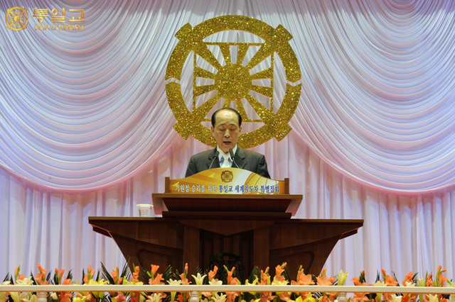 Following the report prayer was a video presentation. The video was a short video which covered and put together scenes of 'Sun Myung Moon, the True Parents of Heaven, Earth, and Humankind; the Universal Sung Hwa Ceremony' and 'Sun Myung Moon, the True Parents of Heaven, Earth, and Humankind; the Universal Sung Hwa Won Jun Ceremony'.