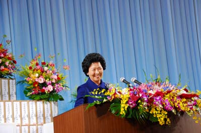 On November 7, Dae Mo Nim arrived in Japan and traveled to Okayama. Around 7,000 people from region 10 and 11 came to attend the 1-day Seminar which began from 10:00 am. The program began with Rev. Yeong-seop Song, General President of Unification Movement in Japan, opening greetings, Chanyang Yeoksa session, lecture by Rev. Myeong-gwan Lee, General Director of Chung Pyung Heaven and Earth Training Center, video presentation, welcoming address, Dae Mo Nim's words, and ended with 3 cheers of Eog-mansei. After the 1-day Seminar 600 people gathered to hold a victory banquet, where a representative received a gift from Dae Mo Nim. The banquet also provided a time for everyone to make a strong resolution for the victory of Foundation Day.