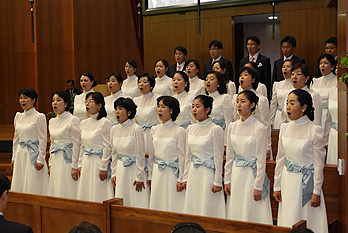 The Cheong Shim Unification Church Choir sings at the dedication ceremony for the newly-constructed church.