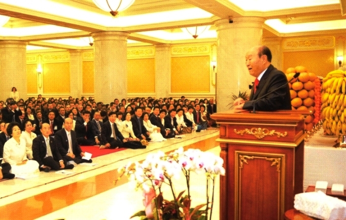 Sit quietly. I will say a few words. In the past, after Heung Jin passed away, for the first, second, third and fourth year, people placed True Parents' photograph with greater respect than they had for their ancestors and offered a full bow to it and to our flag. Yet, midway, these blessed families discontinued all of that. This tradition must be rebuilt.