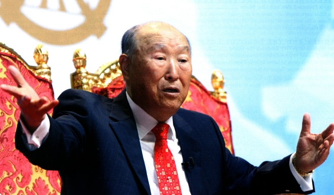 I said, "Homeland, shine brightly!" and then I took responsibility for this and walked forward hoisting the flag at every pinnacle of victory. Had I not done so, the age of the safe arrival of True Parents would never have come. Now, I'm talking not about the safe arrival of True Parents, but about firm settlement. We have reached the age of settlement.