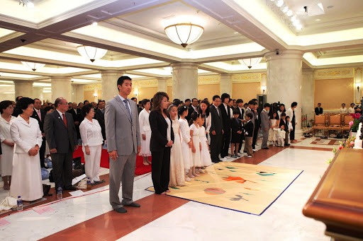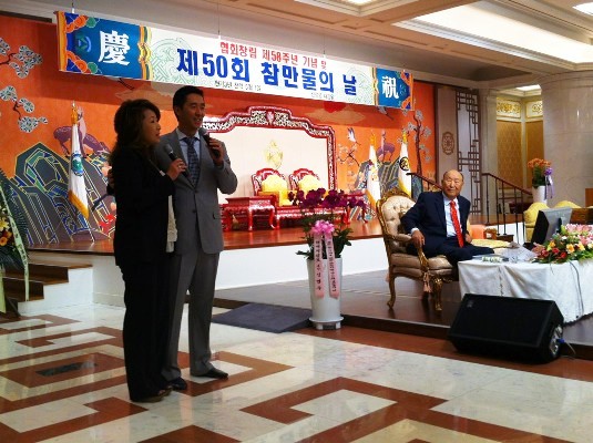 (While Dr. Peter Kim was reading Father's prayer at the end of his speech given on the Day of All Things in 1963, Father said) "This is the moment when everything has been completed and concluded, Heavenly Father! ('Aju.') No other words are necessary. No address is necessary. You should know (what Father prayed) is the only method to solve all problems. We will understand and eternally attend to Heavenly Father who can reign all nations in the world, Aju. ('Aju.')"