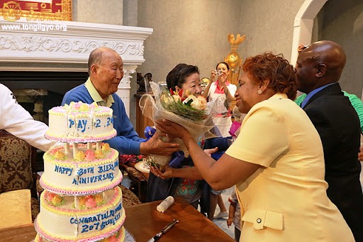 Mrs. McDevitt sang for Shin Pyeon Nim "악어떼," (This Old Man) 올챙이와 개구리," (Tadpoles and Frogs) and then Rev. Yang (서울의 창가 -- The window of Seoul), Rev. Park (소양강 처녀 Soyang virgin), Rev. Hyung Jin Moon (Top of the World) sang while shin Pyeon Nim danced to the songs.