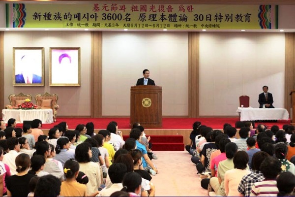 Below are photos taken at the closing ceremony of "5-Day Special Education of the Original Substance of the Divine Principle for New Tribal Messiahs in Preparation for the Foundation Day and the Restoration of God's Homeland (기원절과 조국광복을 위한 신종족적 메시아 원리 본체론 5일 특별교육)," which took place on HC 5. 16 (July 5, 2012).