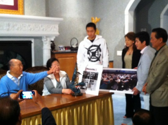 "I always come to Las Vegas tuning in to the providential time, but you have been always indifferent to it. At least I myself greet Heaven with the candle light on, which becomes a condition. The restoration of history is the battle of making conditions. Do you understand?"