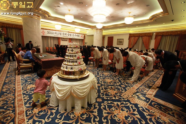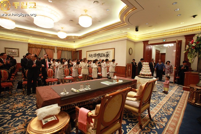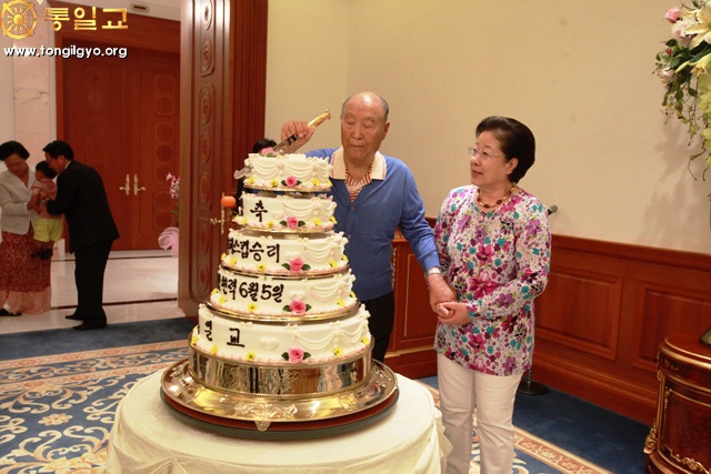 Prior to Hoon Dok Hae that day, True Parents cut the cake to celebrate the victory of the Peace Cup held from July 19 to 22 in Soowon, Korea