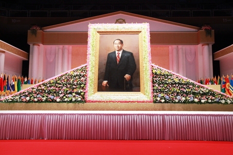 The period to give our condolence began today, September 6th in Chung Pyung. A large number of members started to gather at Chung Pyung training center. Since 50,000 people are expected to come, the road to Chung Pyung training center, which has been under construction, was specially paved for the guests from abroad. The police stated to control the traffic. At this first day, True Parents' relatives and elders were blessed to have a chance to attend True Parents at Cheon Jeong Gung. This morning at 8 o'clock, True Parents' relatives, 36 family members and regional directors gathered at World Peace Center to go up to Cheon Jeong Gung where True Father's Holy Body is. The Altar of Universal Seonghwa Ceremony for True Father was covered by flowers and flowers of condolence from the President of Korea and other nation worldwide were decorating the Altar. After offering flower to True Father in front of the Altar, we all visited Cheon Jeong Gung by bus to offer our attendance and love for True Parents.