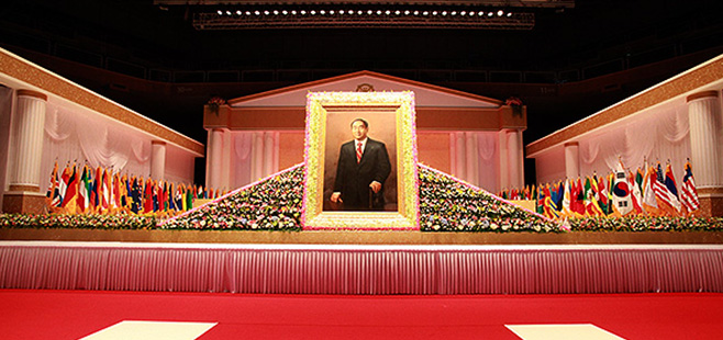 During the wake, the body of Rev. Moon is kept in a glass coffin under low temperature and enshrined in Cheon Jong Gung, where is the memorial museum of unification church. After the casket ceremony on 14, he will be transferred to Cheongshim Peace World Center where the funeral will be held on 15.