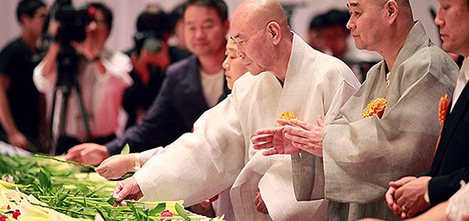Religious leaders paying their respects included Chairman Lee Hee-ho of Kim Dae-jung Peace Center, Head Executive Park In-gong of the Taego Order of Korean Buddhism, Spiritual Patriarch Dorim Beopjeon of the Jogye Order of Korean Buddhism, and Head Executive Lee Hong-pa of the Gwaneum Order of Korean Buddhism.