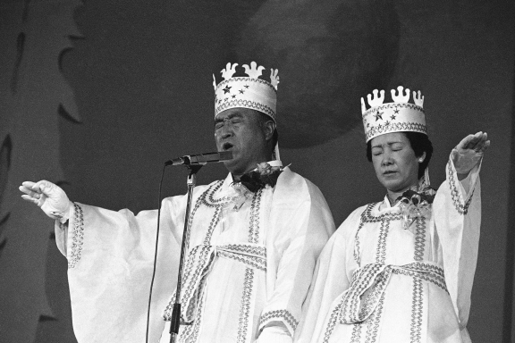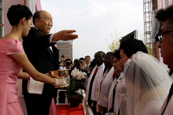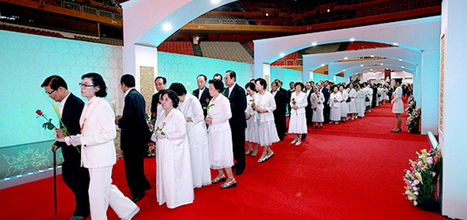 May — Gave the marriage blessing to 33 couples. Over the next decades and up to March 2012, the Moons held dozens of mass weddings, many with tens of thousands of couples, and even hundreds of thousands who participated either at the main ceremony or via satellite in ceremonies around the world.