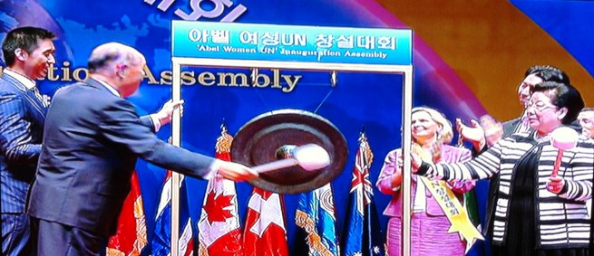 When we look back, today's historical Establishment Rally for the 'Abel Women UN began from the establishment of 'Women's Federation for World Peace', which was created as the spinal organization for women's peace movement according to the Will of Heaven. It was established in April 1992, at the Olympic Stadium in Seoul, and it was attended by women representatives from some 70 nations and 150,000 Korean women leaders. For twenty years since its establishment, 'Women's Federation' has been constantly engaged in world peace movement through creating networks for peace movement centering on women in 160 nations around the world.