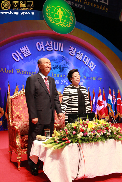 From the early days, Rev. Moon and I upheld the Will of heaven and proclaimed the vision of peaceful world originally envisioned at the time of creation. We have come here today shortly after our busy providential schedule in America in order to create the 'Abel Women UN,' the mission of which is to realize the providential goal of creating on Earth the eternal peaceful world devoid of conflicts and wars.