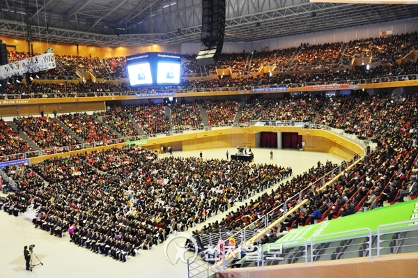 Please do not be indebted. You should pay back your debt. In order to do so, you should widely raise the seeds of the truth around you. Will you do it? ('Yes!) I sincerely ask you to become honest, brave, and true Ambassadors for Peace who pledge, until the end of your life on earth, to return honor to Heaven in a higher, greater, and wider manner by indemnifying what you could not do until now in front of the True Father of Heaven, Earth and Humankind." (Applause)