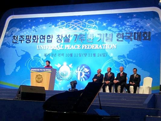When I met Rev. Moon, I was young but I realized what the history of restoration through indemnity was. So though I was young, I was determined to definitely accomplish God's providence in my lifetime. (Applause) I talked about Han Jun Jo and that story tells us that a grateful mind is important. In the state of 100 % gratitude, the mind and body can be united. Then their neighbors become happy. I understood that.