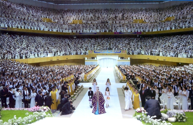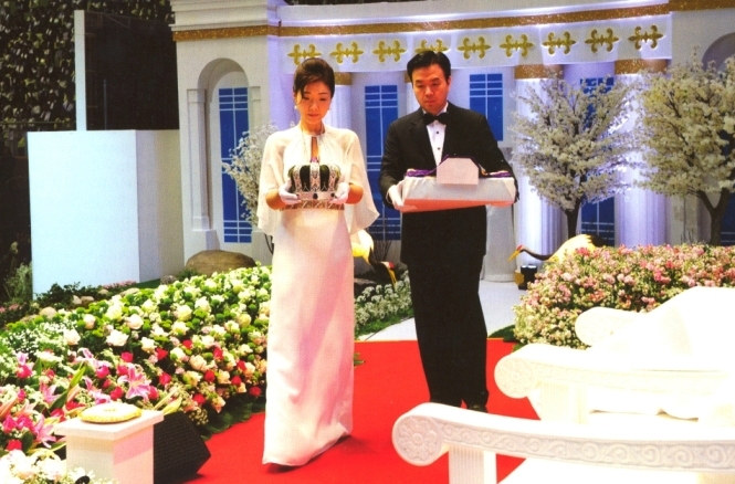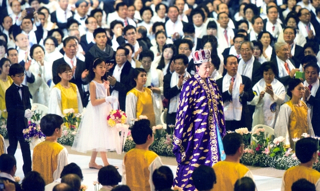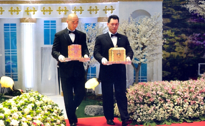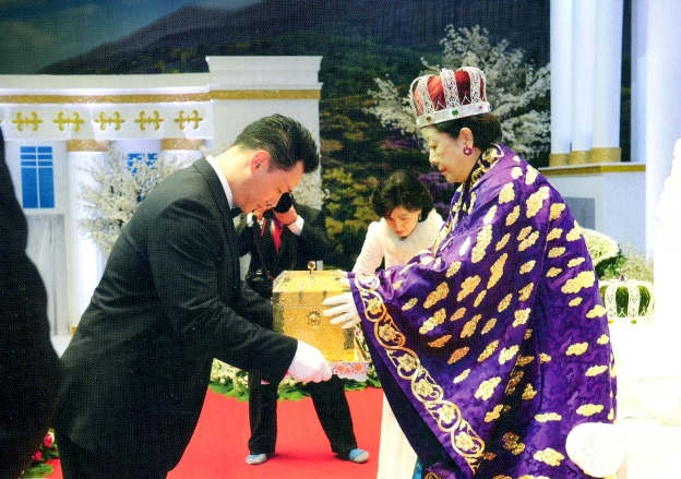 Jin Nim, FFWPU international president, enters bearing the Seal of