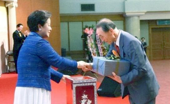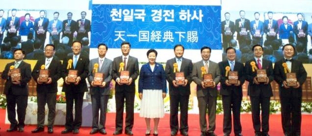 How happy would God be if you could become one with the word and fulfill your responsibility and mission in your respective positions? We still have responsibilities to fulfill in front of Heaven. The responsibility to make the world's seven billion people into Cheon Il Guk citizens and guide them in fulfilling their responsibility and mission as a result of their being born in this age, lies in our hands. You have this responsibility as the first people to know of this providence. You are all in an owner's position in which you can become devoted children and loyal subjects of Cheon Il Guk. However, if you become sluggish, Heaven will not wait for you. Please maintain your determination to live a life of practice. Starting from this day, please put your maximum effort into the salvation of humanity with the gem-like word at the center. I would like to call Rev. Young Hwi Kim, former national leader of the Korean church to the stage and present all those who worked hard for this compilation with a small token of my appreciation.