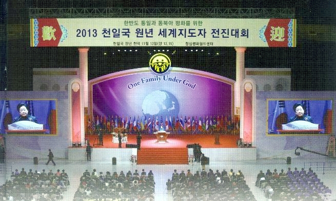 Distinguished Guests from Home and Aboard, Ambassadors for Peace and Beloved Blessed Members from Around the World, Welcome. This year, 2013, was a historic and unprecedented year, starting with Foundation Day; we have now reached a point in which we must wrap up this past year and make preparations to usher in the new age and new hope of 2014, which is about to begin. However, things that have happened around us have made us quite cold.