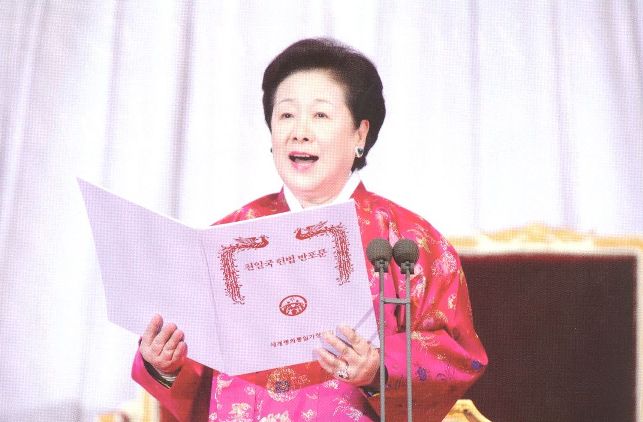 of the Cheon Il Guk Constitution by Hyo Jin nim's family, represented