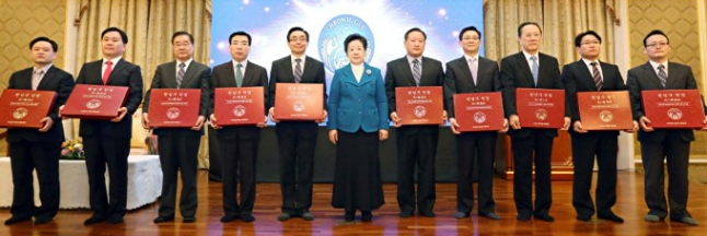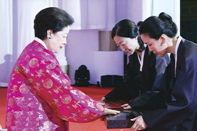 presents the Cheon Il Guk Constitution to Hyo Jin nim's family,