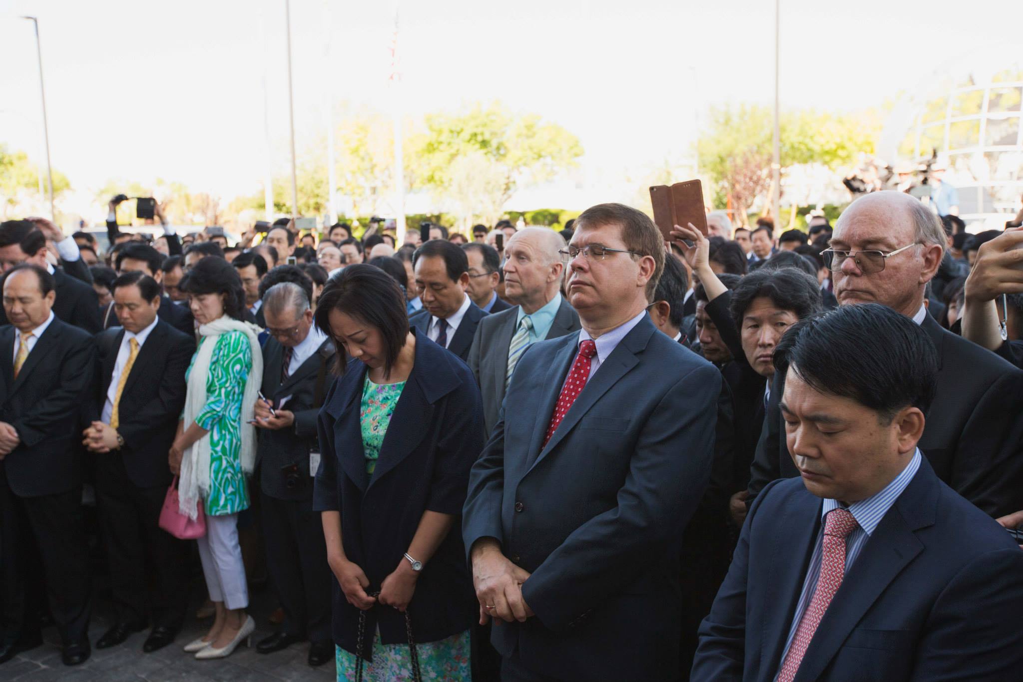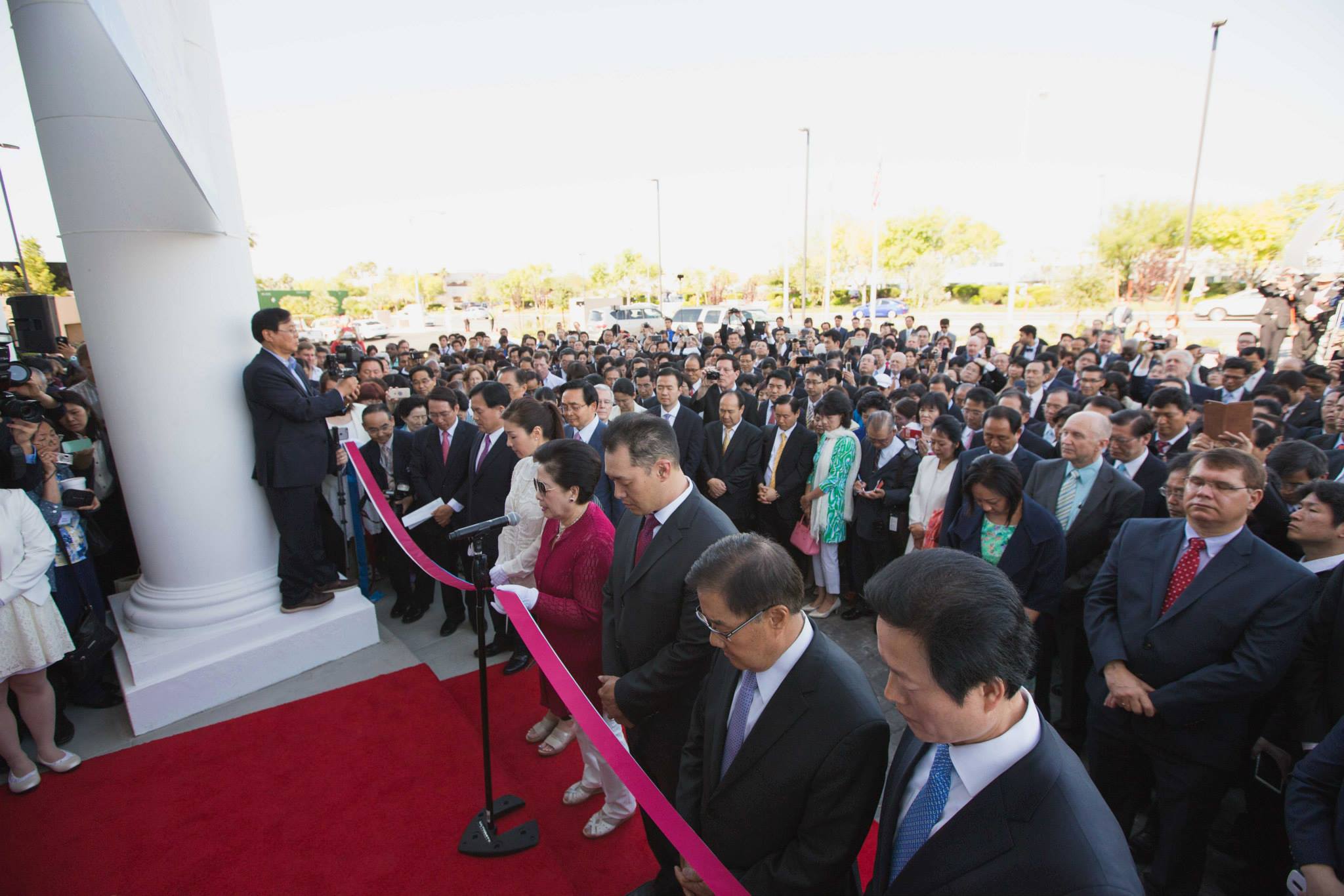 FFWPU USA: On Thursday, May 28, 2015, the International Peace Education Center (IPEC) had its Grand Opening and Sanctification as a new beacon of hope on the horizon of God’s providence. Leaders from Korea, Japan and America, Unificationists who donated considerable amounts to IPEC, members of the Generation Peace Academy and Universal Peace Academy, 7-day Divine Principle Workshop participants, several news teams from around the world and Unificationists from throughout the states welcomed True Mother, True Parents and members of True Parents’ family for the sanctification ceremony for IPEC. Upon arrival, the 7-day Divine Principe Workshop participants, some of whom are guests and saw True Mother for the first time, witnessed a crowd of eager Unificationists all bright-faced and desirous to express their love to True Parents.