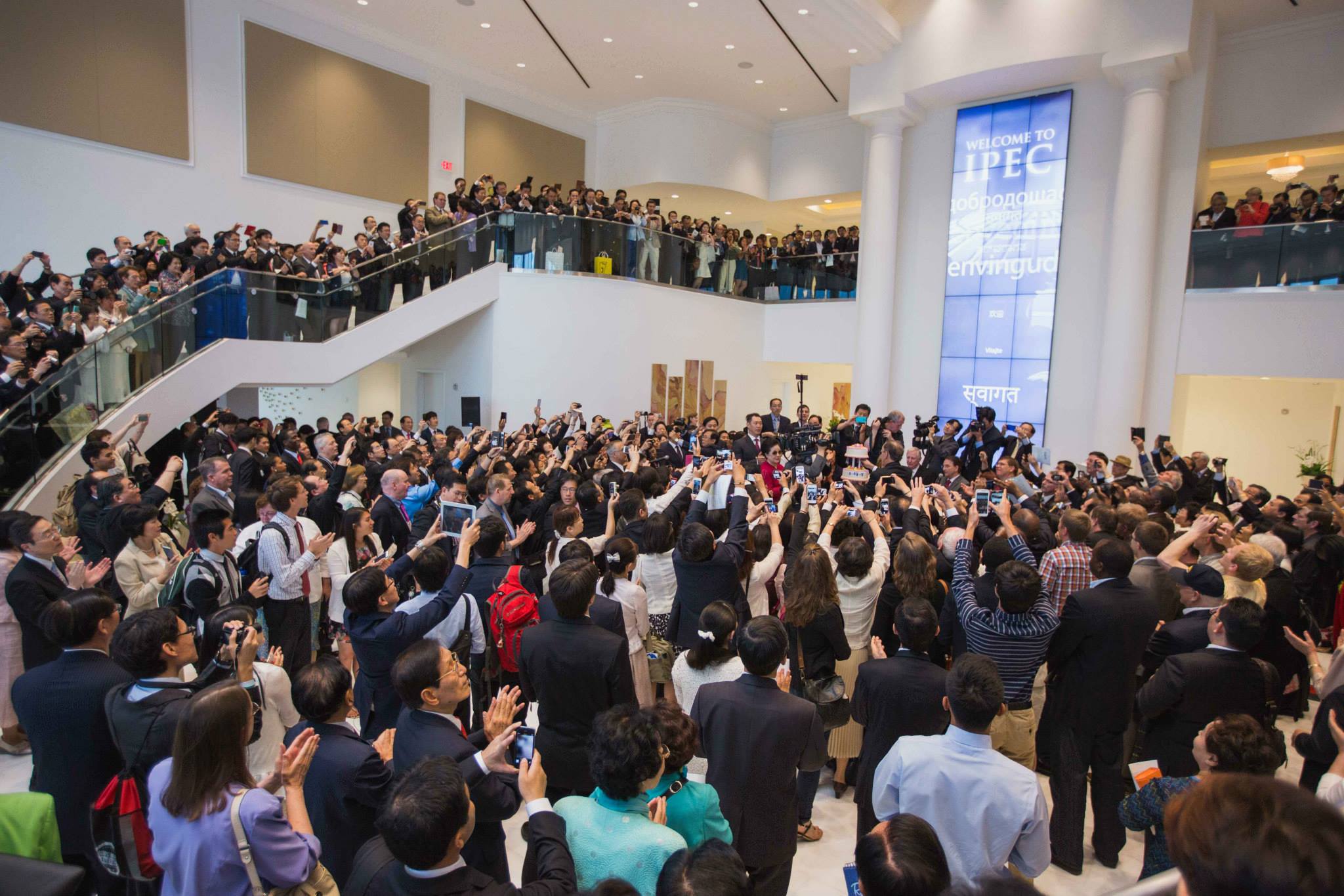 Large screens were set up on walls and free standing in the main entrance hall with looping Thank You’s in all languages and images of the Holy Scriptures, which were available for purchase on the main level.