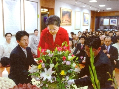 These are True Mother's remarks on November 21, the twentieth anniversary of the ascension of her mother, Soon-ae Hong, on whom Father bestowed the posthumous title of Dae-mo nim. Mother spoke at the Choong Eui Ae Gwan (Hall of Loyalty, Righteousness and Love), a museum and prayer room created to honor her mother's earthly life.