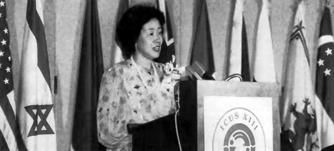 When my husband initiated ICUS thirteen years ago, I really did not have any idea about the value of these conferences. However, now that we have reached the level of accomplishment which we see today, I am simply astonished at the greatness of the ICUS vision. In this age of specialization, we clearly see the need to deal with global problems in their entirety. In this respect, this science conference is very unique. It is probably the only forum where world problems can be examined from such a holistic perspective. I have now come to the firm belief that the problems of the world can only be solved by this approach. I am very proud of Rev. Moon's vision. I admire his foresight, not because he is my husband, but because he is a man of great ideals.