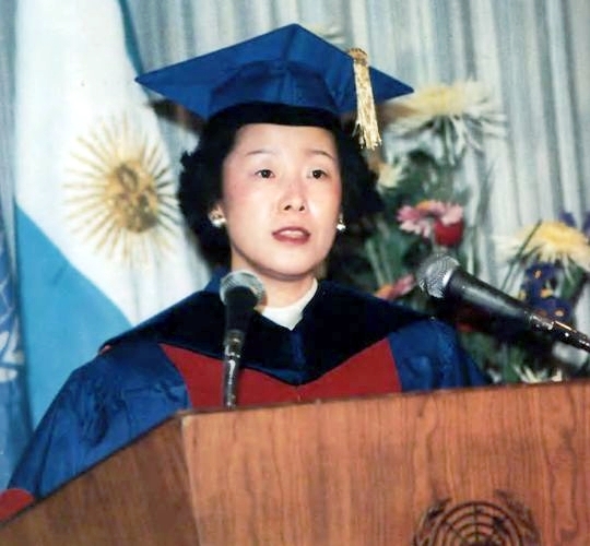 As the wife of Reverend Moon, I join with my children and the members of the Unification Movement throughout the world in saluting the courageous stand which you and your university are taking in recognizing and honoring my husband at this difficult time. It deeply touches my heart. I cannot truly express the profound appreciation which I feel on this occasion.