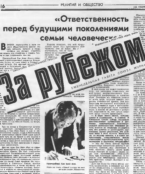Interview of Hak Ja Han for Soviet Za Rubezhom Magazine