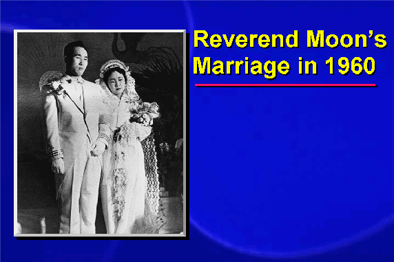 On March 16, 1960, Reverend Moon was blessed in holy marriage to Hak Ja Han, a devout young Christian who had fled south with her mother during the Korean War and had joined the Unification Church.