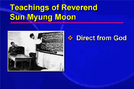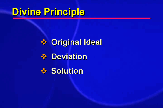 The Divine Principle contains Reverend Moon's revelations concerning the origin of this world, the original ideal of creation, the deviation from this ideal resulting in the problems of today, the solution to this deviation, the course of history toward that solution, and a vision for a future world of peace, based on the creator's original ideal.