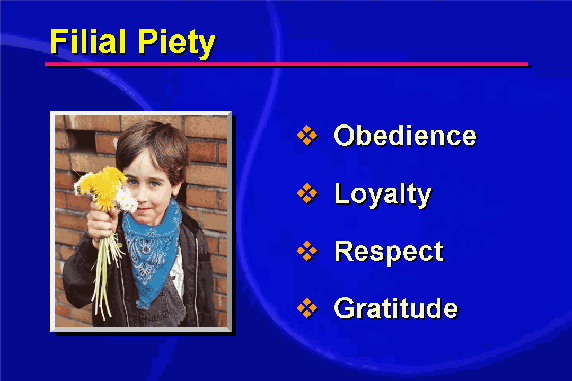 They are not afraid that supporting and serving others will diminish themselves. They can bring out the best in their teachers and supervisors and may even come to inherit their positions. The extension of filial piety includes loyalty and patriotism. In many languages, one's nation is called the fatherland or motherland.