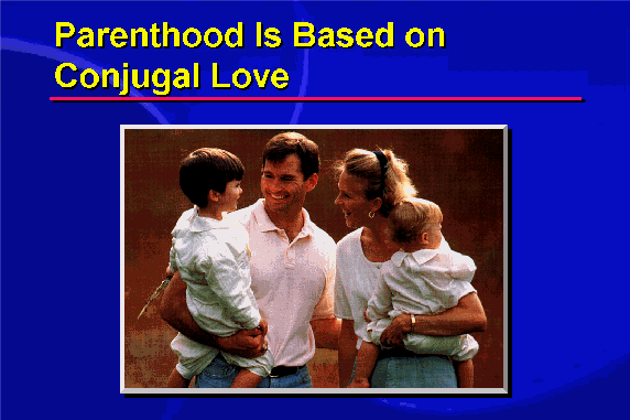 Conjugal love is built upon absolute trust and fidelity. When that trust is strong and love is mature, then the couple is ready for the challenges of parenthood. Our commitment to the continued growth of our spouse foreshadows our role as parents.