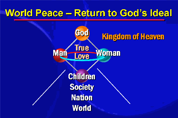 Reverend Moon equates God's ideal with world peace, and since the union of men and women of mature love is central to God's ideal, then it is also central to a world of peace.