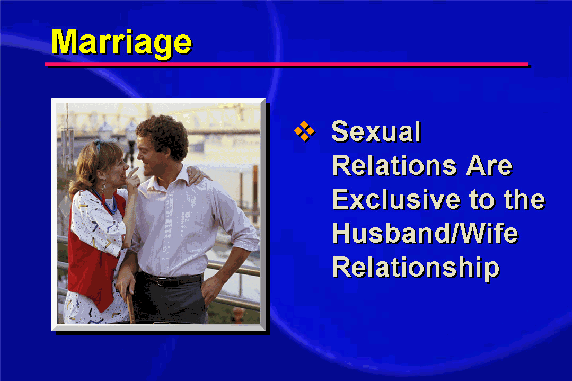 Sexual relations are reserved exclusively for the horizontal axis of two equal counterparts of the opposite sex who are totally committed to one another. Furthermore, their responsibilities are not merely horizontal but extend vertically toward the previous and future generations.